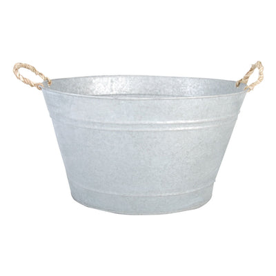 Esta tinaja en diseño de zinc antiguo, gracias a su forma ovalada también se puede usar como maceta, pileta de agua o como hielera.