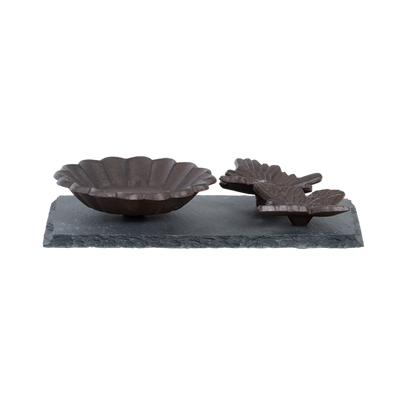 Ofrezca un baño a los pájaros con este clásico cuenco de hierro fundido sobre una bandeja. Dos animales ya se han instalado en la bandeja, otros lo seguirán pronto. También se puede utilizar como comedero.