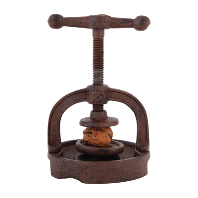 El siglo XVII fue la primera vez que se utilizaron cascanueces de tornillo, este auténtico cascanueces funciona girando el mecanismo de tornillo en el sentido de las agujas del reloj hasta que la cáscara de la nuez se rompe. Este cascanueces decorativo de hierro fundido ha sido fundido a mano según la antigua tradición y artesanía de la jaula.