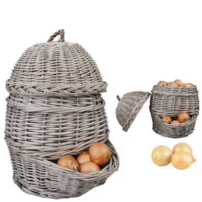 Aparte de las cebollas, también puede almacenar manzanas o papas en esta canasta.