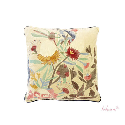 El hermoso bordado sobre el suave terciopelo le da un toque elegante y sutil a este precioso cojín.