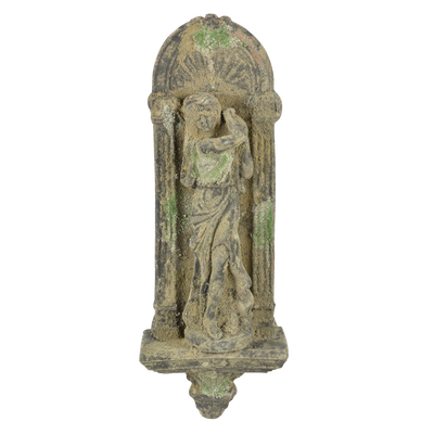 El material desgastado de esta pieza decorativa aporta un ambiente natural, sereno y auténtico al jardín.