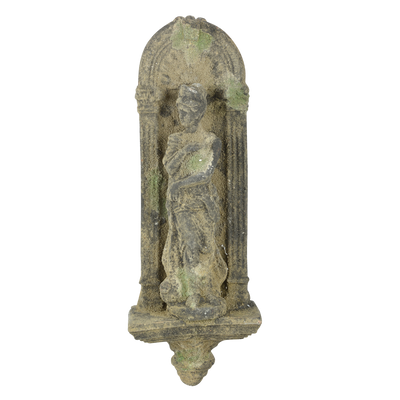 El material desgastado de esta pieza decorativa aporta un ambiente natural, sereno y auténtico al jardín.