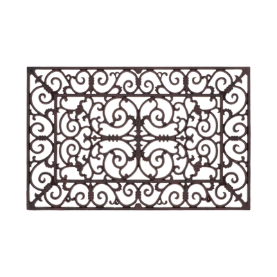 Este felpudo rectangular de hierro fundido aporta un toque clásico a la entrada. La alfombra tiene un diseño victoriano con graciosos rizos. Cada alfombra ha sido fundida a mano según la antigua tradición y artesanía.