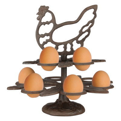 Los huevos frescos son deliciosos en el desayuno o el almuerzo. Este huevera decorativo de aspecto rural permite guardar de forma segura diez huevos frescos. Este soporte para huevos de hierro fundido ha sido moldeado a mano según una antigua tradición y artesanía.
