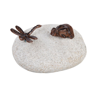 Libelula y Rana sobre piedra natural redonda