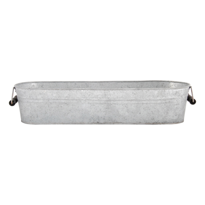 Esta bandeja ovalada con un diseño de zinc antiguo permite plantar varias plantas una al lado de la otra.