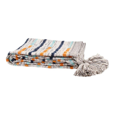 Hecho de varios colores en un motivo de rayas con 4 grandes pompones, no solo es decorativa sino también muy agradable para taparse.