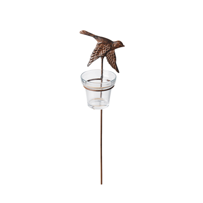Aunque los pájaros suelen alegrar el jardín con su canto, estos pájaros proporcionan un espectáculo atmosférico. El vaso de cristal protege la vela del viento. Estos pájaros decorativos con estaca de hierro fundido están moldeados a mano individualmente según la antigua tradición y artesanía.